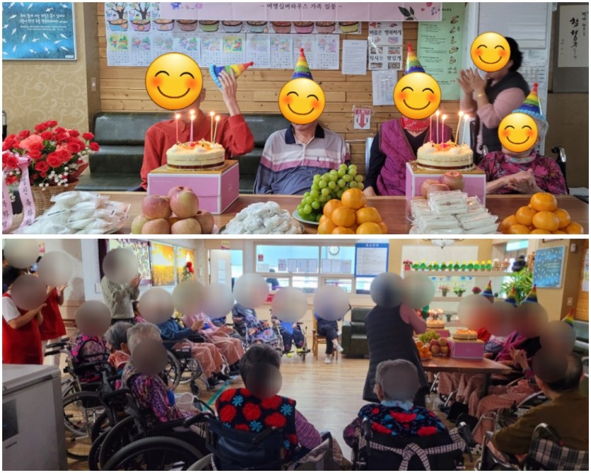 입소 어르신과 원장님 이하 전직원 마음 모아 축하를 해드립니다.